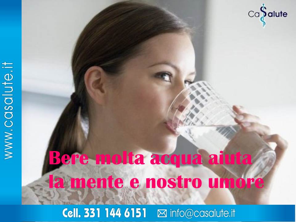 Bere acqua aiuta la mente L’acqua costituisce circa il 55-60 % del nostro corpo e addirittura il 75% del nostro cervello. Essa è indispensabile per l’idratazione del nostro organismo ma lo è altrettanto per la nostra mente. Alcuni studi hanno ..